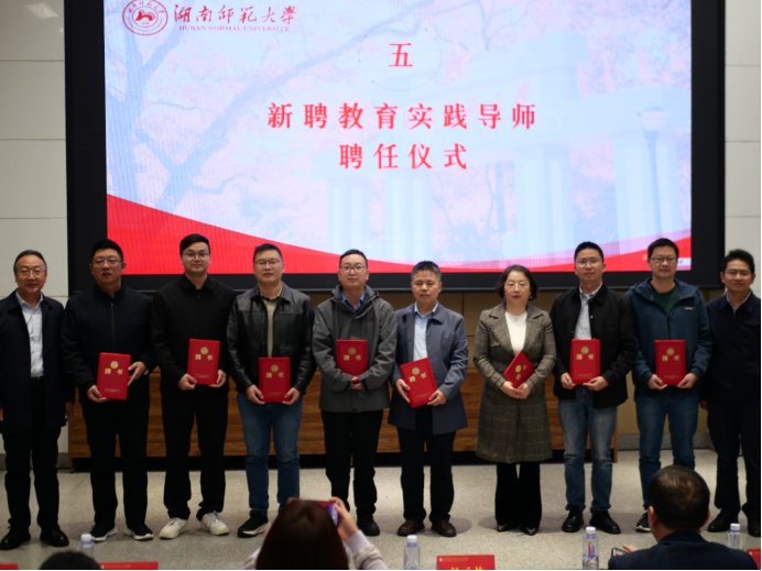 在新聘教育实践导师聘任仪式环节,赵子林与蒋国海共同为新聘导师颁发聘书。在主题交流研讨环节,参会师生就会议主题展开热烈研讨,特别是对到中学开展教育观摩与学习的安排、模式等进行了讨论。