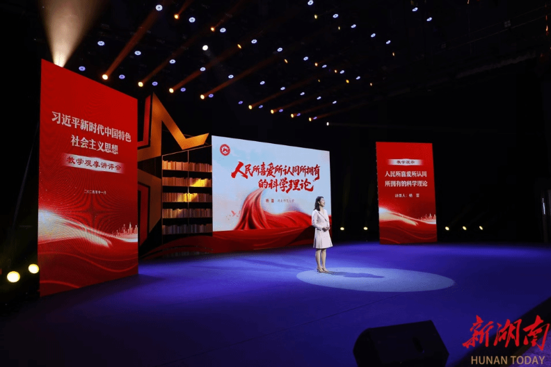 会上,作为5名湖南高校优秀思政课教师代表之一的我校青年教师杨蕾聚焦“人民所喜爱所认同所拥有的科学理论”主题,通过脱贫攻坚、民生改善等鲜活案例,阐述习近平新时代中国特色社会主义思想的人民立场与实践力量,展现科学理论“接地气、有温度、能落地”的特质。据悉,该教学展示示范课程将制作成网络课程资源,进行线上推广传播,为全省思政课高质量发展注入新动能。