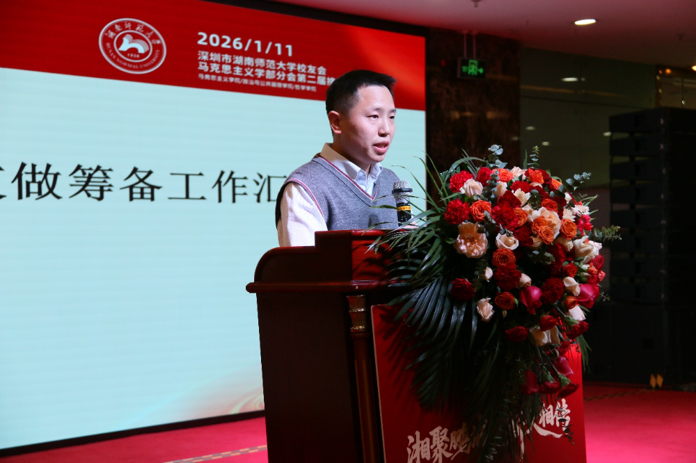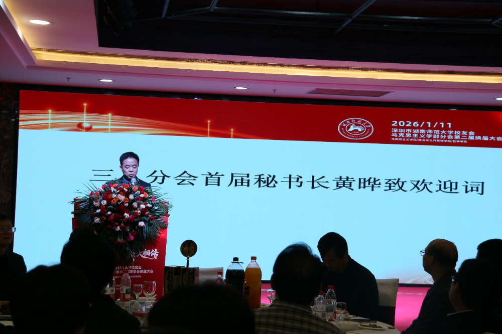 深圳市湖南师范大学校友会马克思主义学部分会首任秘书长黄晔致欢迎辞,向莅临现场的母校领导、嘉宾及各位校友表示热烈欢迎。