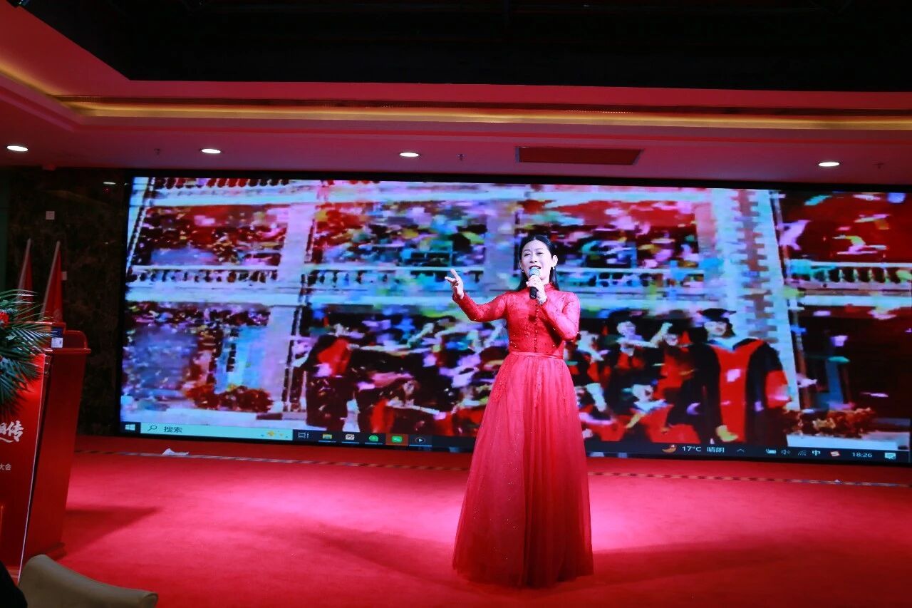 随后的交流晚宴进一步将气氛推向高潮。 音乐学院易丹丹校友献唱《共圆中国梦》《我真的好爱你》; 音乐学院严宸芳校友带来歌曲《最爱》与舞蹈《我清楚的看见你》,收获阵阵掌声;黄晔校友朗诵田地会长诗作 《南方和北方》,引发深切共鸣,并与田地会长合影留念;赵千丽校友一曲《千千阙歌》深情动人。