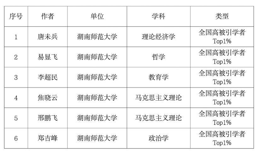 近日,中国知网发布了“2025高被引学者TOP1%”榜单。湖南师范大学马克思主义学院唐未兵教授、易显飞教授等多位教师入选“2025高被引学者TOP1%”榜单。