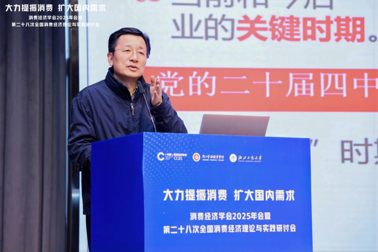 2025年12月21日,消费经济学会2025年会暨第二十八次全国消费经济理论与实践研讨会在浙江杭州成功举办。消费经济学会副理事长、湖南师范大学马克思主义学部主任、马克思主义学院教授唐未兵出席会议,发表题为《“十五五”时期大力提振消费的思考》的主旨演讲并主持“消费新业态新模式新场景试点城市”代表演讲环节。