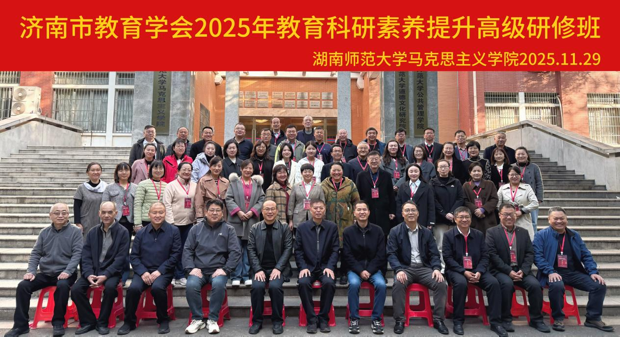 2025年11月29日上午8:30,由湖南师范大学马克思主义学院承办的“济南市教育学会2025年教育科研素养提升高级研修班”在学院立德讲堂隆重举行开班典礼。湖南师范大学马克思主义学院党委书记李泳波、济南市教育学会会长刘明辰出席典礼并讲话,开班典礼由湖南师范大学马克思主义学院副院长汤小红主持,济南市教育系统52名教科研骨干教师齐聚湖湘学府,开启为期5日的研修学习之旅。