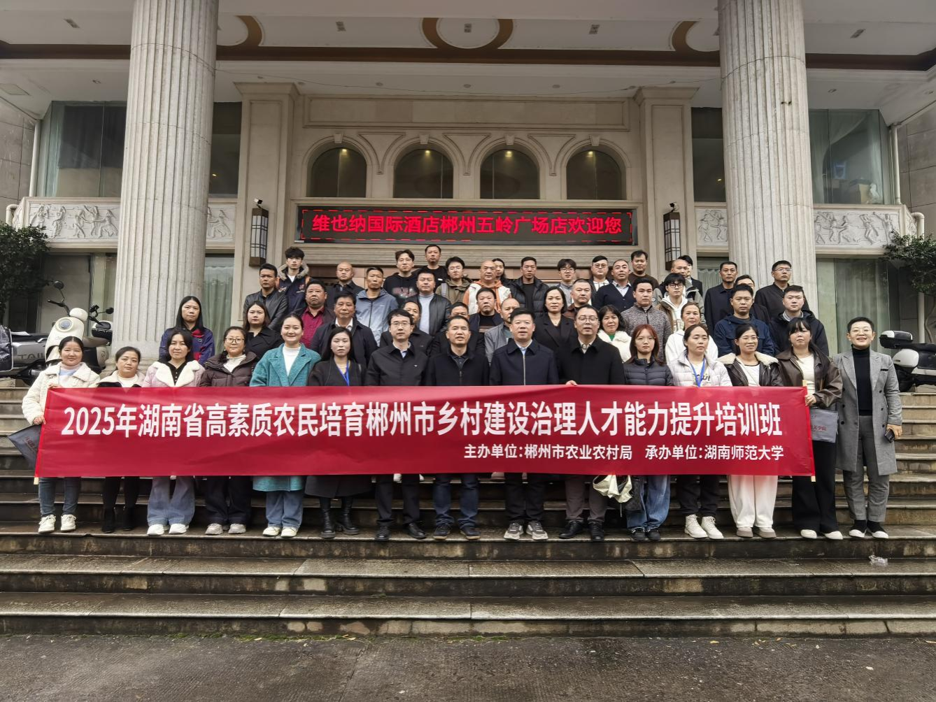 12月12日上午,2025年湖南省高素质农民培育郴州市乡村建设治理人才能力提升培训班举行开班仪式。郴州市农业农村局副局长李卫国、郴州市农业农村局农村社会事业促进科科长曹海浪、湖南师范大学马克思主义学院副院长汤小红出席。