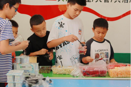 活动筹备阶段,实践团成员采购了各类水果和酸奶,为活动做好充分准备。活动现场,夏令营学生们有序排队,依据个人喜好挑选水果。实践团成员为学生分发勺子、倒入酸奶。大家分组,分工协作,有的搭配水果,有的调配酸奶与水果的比例,一起自制独属自己的水果杯。活动接近尾声,同学们围坐在一起,品尝自己亲手制作的水果杯。他们一边品尝着水果杯,一边分享着活动中的心得。
