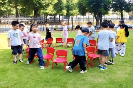 学生进行抢凳子项目