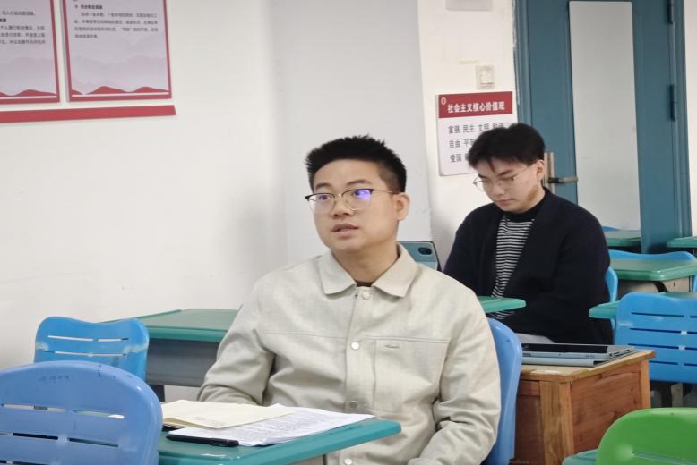试讲过程中,5名实习学生依次登台,综合运用情境设置、案例分析、互动提问等方式,将法律知识与生活实际有机融合,讲授法律的规范与保护作用,展现了思政专业学子的教学实践能力。各位试讲者注重课堂节奏的把握,循序渐进,努力将法律知识讲清、讲透。